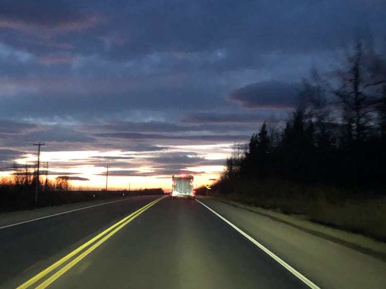 Our fifth day of driving went very well, until it didn’t. In Aubrey’s words, her truck “said no.” It was still drivable after the weird sound, and we made our way to the local Chevrolet dealership, where we learned that her engine would have to be replaced. Along with the right front wheel well, and some front-end work. Not fun news. But God is so good–this happened just outside Grande Prairie, the only town of any size for the remainder of our route. And we ended up at the Doug Marshall dealership, where they took incredible care of her. After seeing her veteran’s tag and hearing her story, they proceeded to give her priority, even to the point of the mechanic staying until 2:00 a.m. to get the engine installed. The front-end guy came in the next morning to complete the work on the ball joints and tie rods, and when she picked up her truck they thanked her for her service and gave her a $50 gift card, along with a discount. If you are ever in Grande Prairie and need help, they are the place to go. After spending an extra night and day in Grande Prairie, we were back on the road by about 5 p.m. on Friday. Fortunately the planned drive for Friday was the only short one–just four hours. We finished Thursday’s interrupted drive plus Friday’s and made it to the hotel before midnight, thankful for all your prayers and God’s provision.